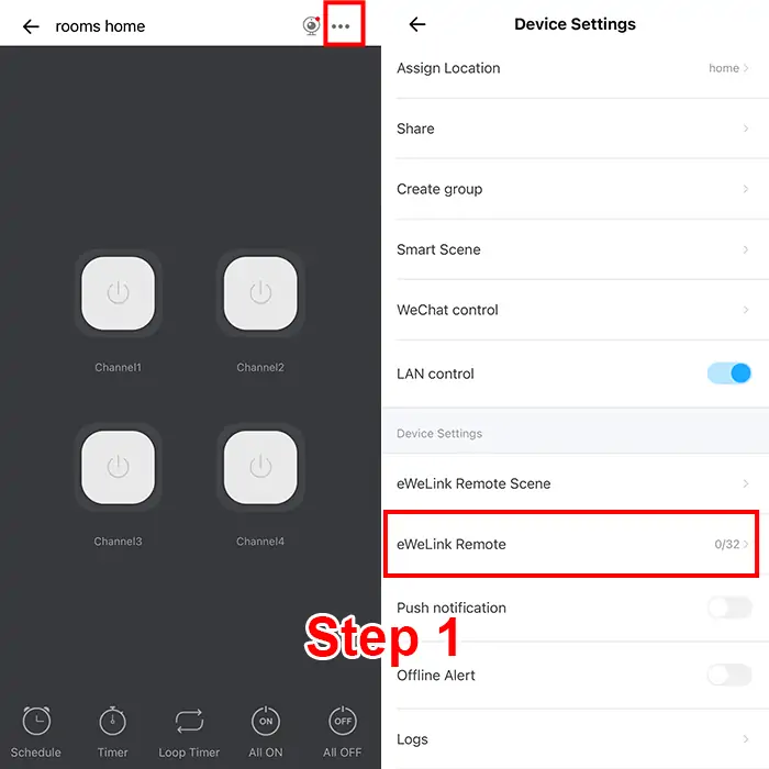 Click on added device, then click settings icon in upper - right corner, and then select "eWelink Remote".