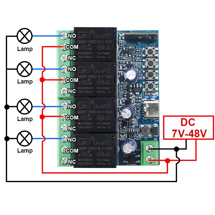 - NC4: Normally closed terminal of relay4
