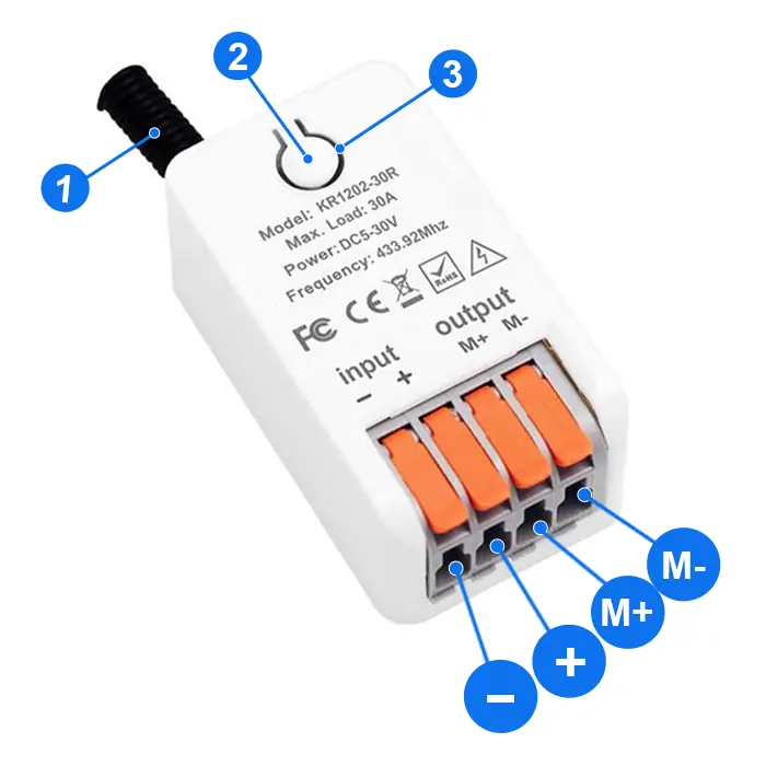 QIACHIP KR1202-30R Instruction Manual DC 5V-30V 433MHz RF Wireless Motor Control Module Relay Receiver