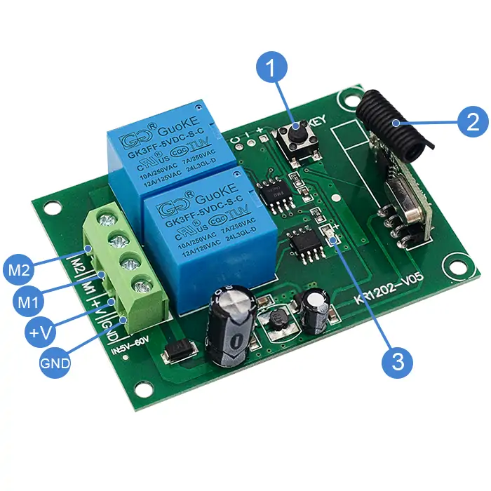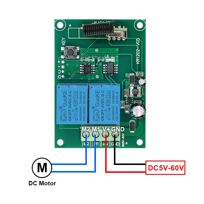 QIACHIP KR1202-V05 Instruction Manual DC 5V-60V 433MHz RF Wireless Motor Control Module Relay Receiver