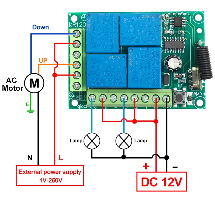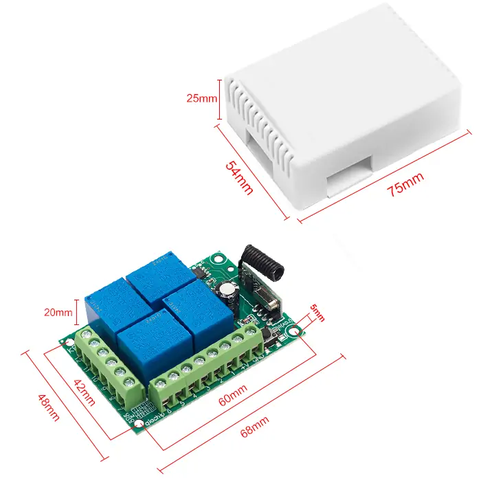 - Release the remote control button (such as A), and the corresponding relay on the receiver will turn off.