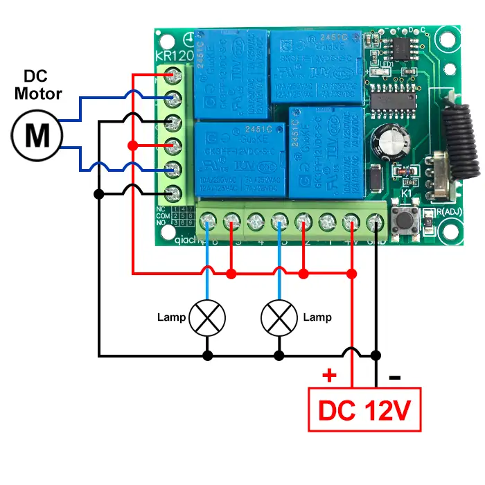 QIACHIP KR1204 Instruction Manual DC 12V 433MHz RF Remote Control Switch 4-CH Relay Receiver