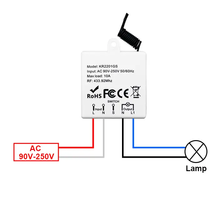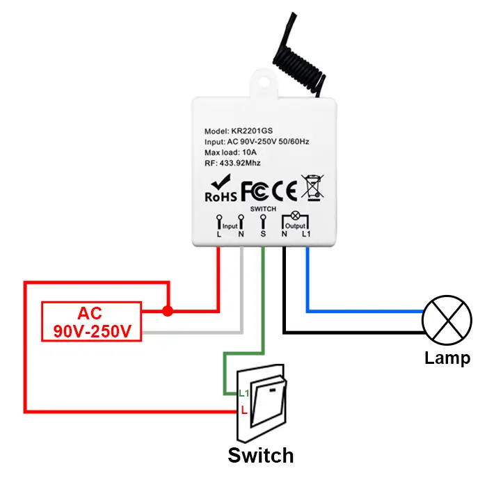 QIACHIP KR2201GS-4 Instruction Manual AC 110V 220V 433MHz RF Remote Control Switch 1-CH Relay Receiver