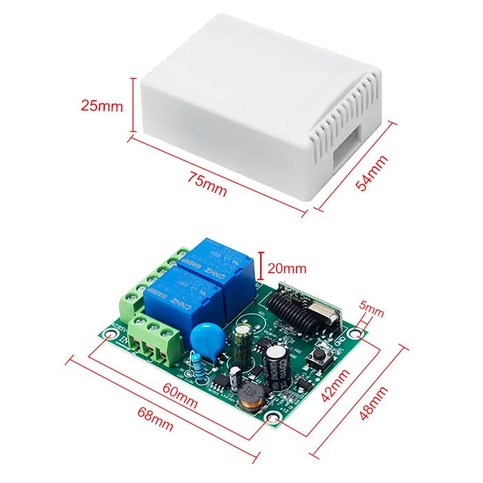 - Housing Length (L) x Width (W) x Height (H): 75mm x 54mm x 25mm
