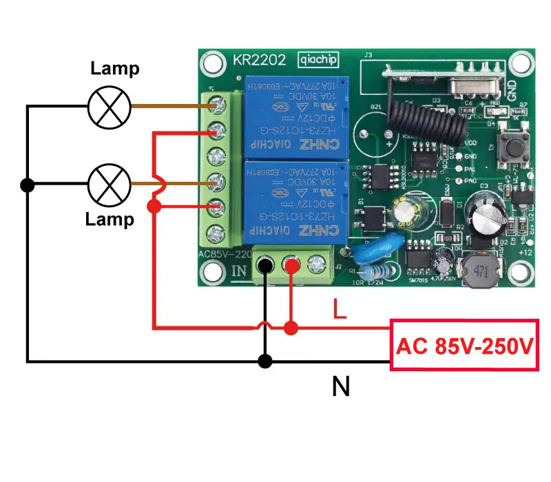 QIACHIP KR2202 Instruction Manual AC 110V 220V 433MHz RF Remote Control Switch 2-CH Relay Receiver