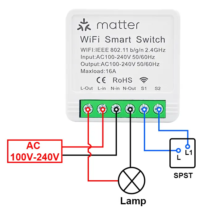 - Figure 2: Wiring diagram for Lamp (SPDT External 1-Way Switch)