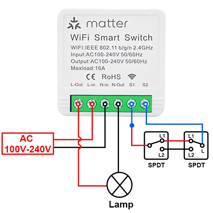 - Figure 3: Wiring diagram for Lamp (SPDT External 2-Way Switch)