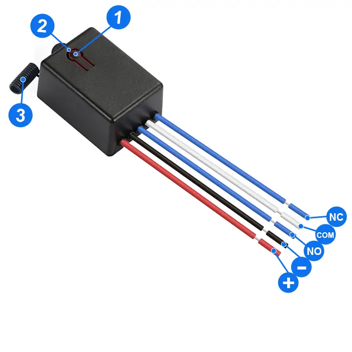 - Release the remote control button (such as A), and the corresponding relay on the receiver will turn off.