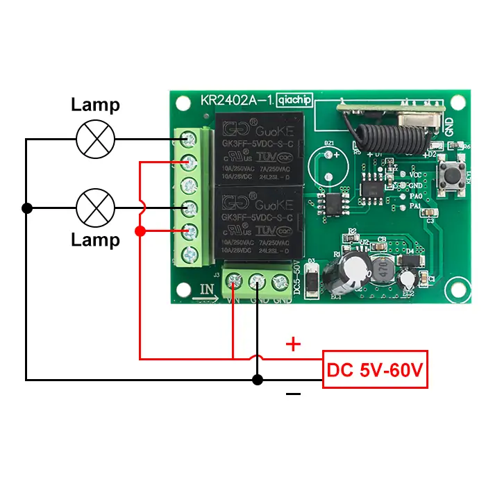 QIACHIP KR2402A Instruction Manual DC 5V-60V 433MHz RF Remote Control Switch 2-CH Relay Receiver