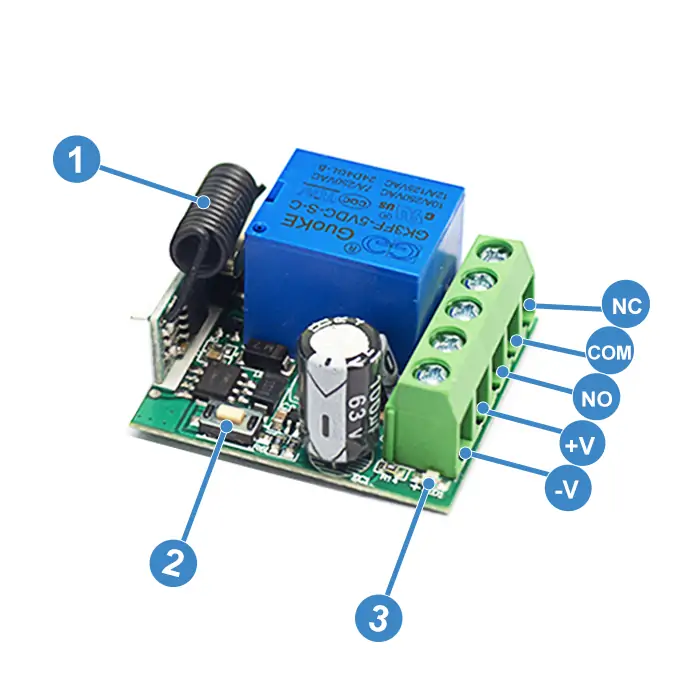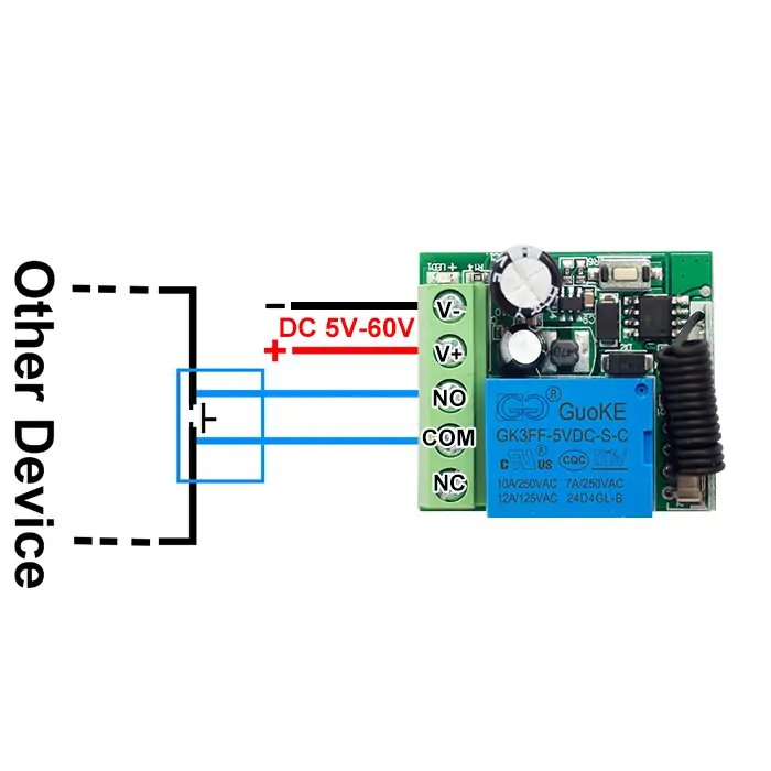 - Release the remote control button (such as A), and the corresponding relay on the receiver will turn off.
