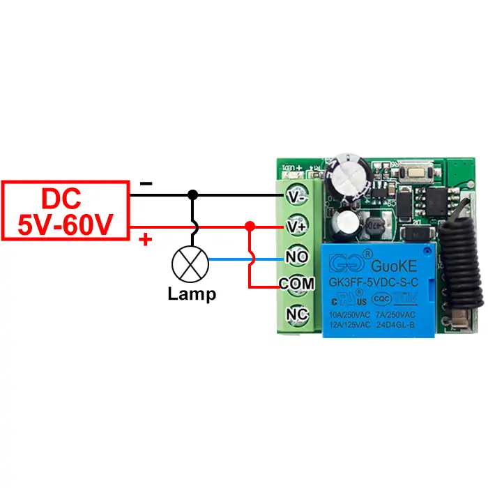 - Press the remote control button (such as A), and the receiver's relay turns on.