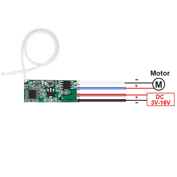 - Press and hold the remote control button (such as B) to rotate the motor backward; release the remote control button to stop.