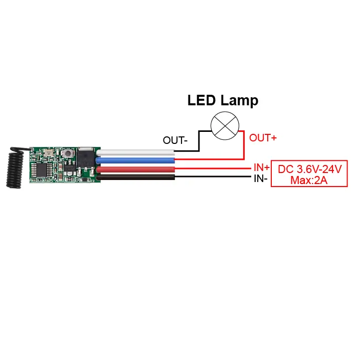 - Press the remote control button (such as A), and the receiver's relay will turn on.