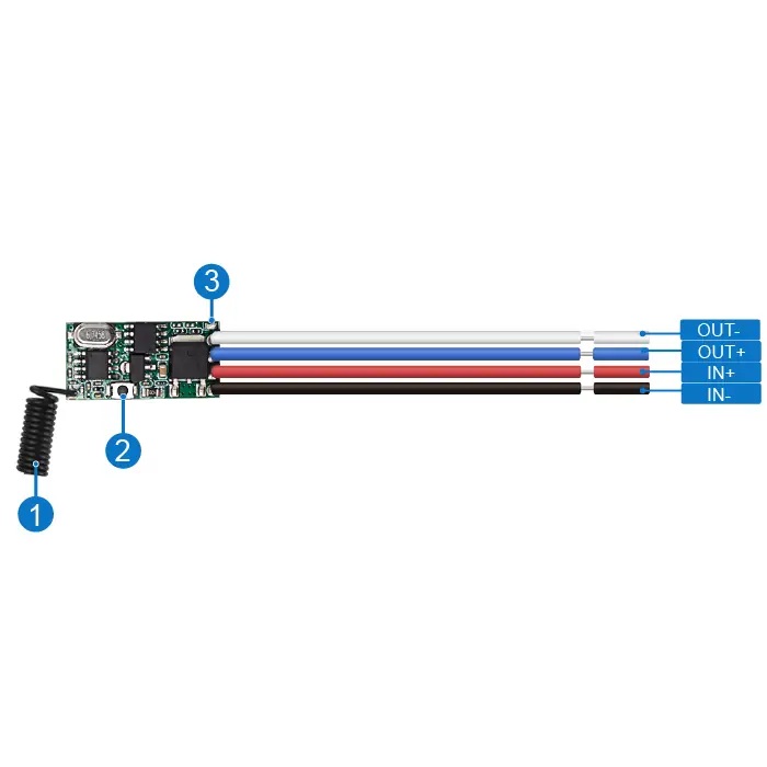 - Release the remote control button (such as A), and the corresponding relay on the receiver will turn off.