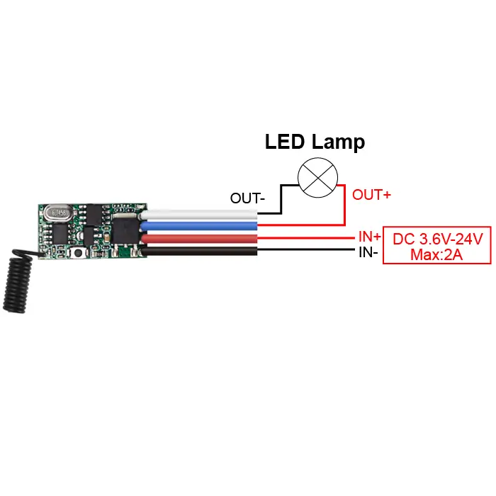 - Press the remote control button (such as A) again, and the corresponding relay on the receiver will turn off.