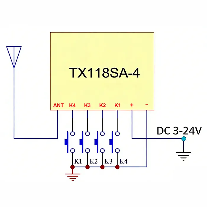 QIACHIP TX118SA-4 Instruction Manual DC 3V-24V 433MHz RF Superheterodyne Wireless Transmitter Module